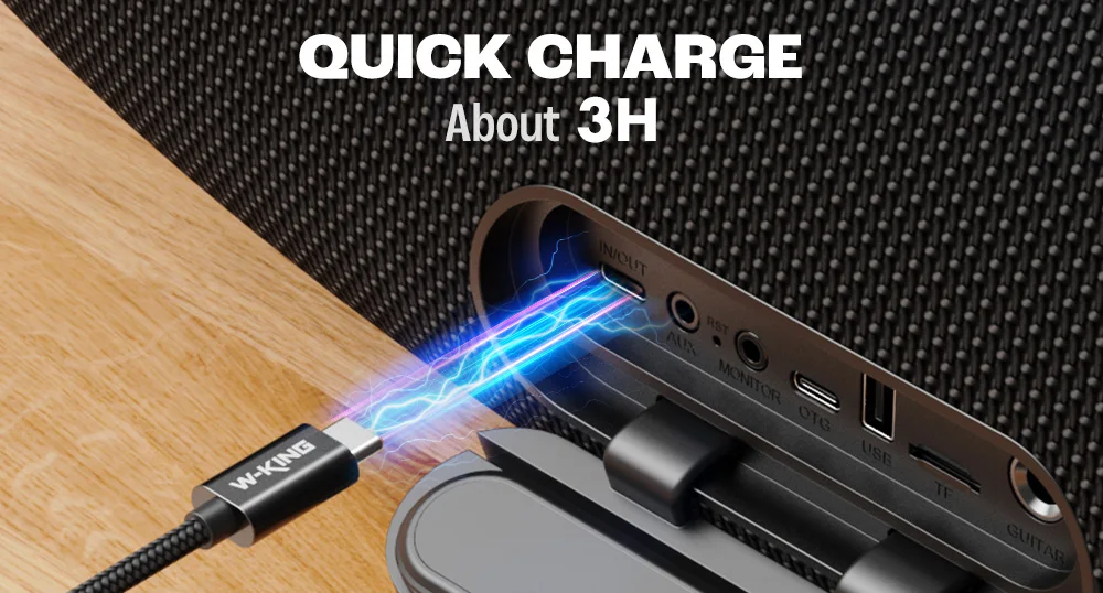 All-Day Playtime & Fast Charging & Power Bank: Whether it's a day at the beach, a hiking trip, or a picnic, the 24-hour playtime makes the party bluetooth speaker a perfect companion for extended outdoor activities. The speaker features the fast charge function (Supports up to 60W fast charging, about 3 hours), providing convenience, flexibility lifestye. The power bank function transforms the speaker into an emergency power source to charge your mobile devices, such as smartphones or tablets