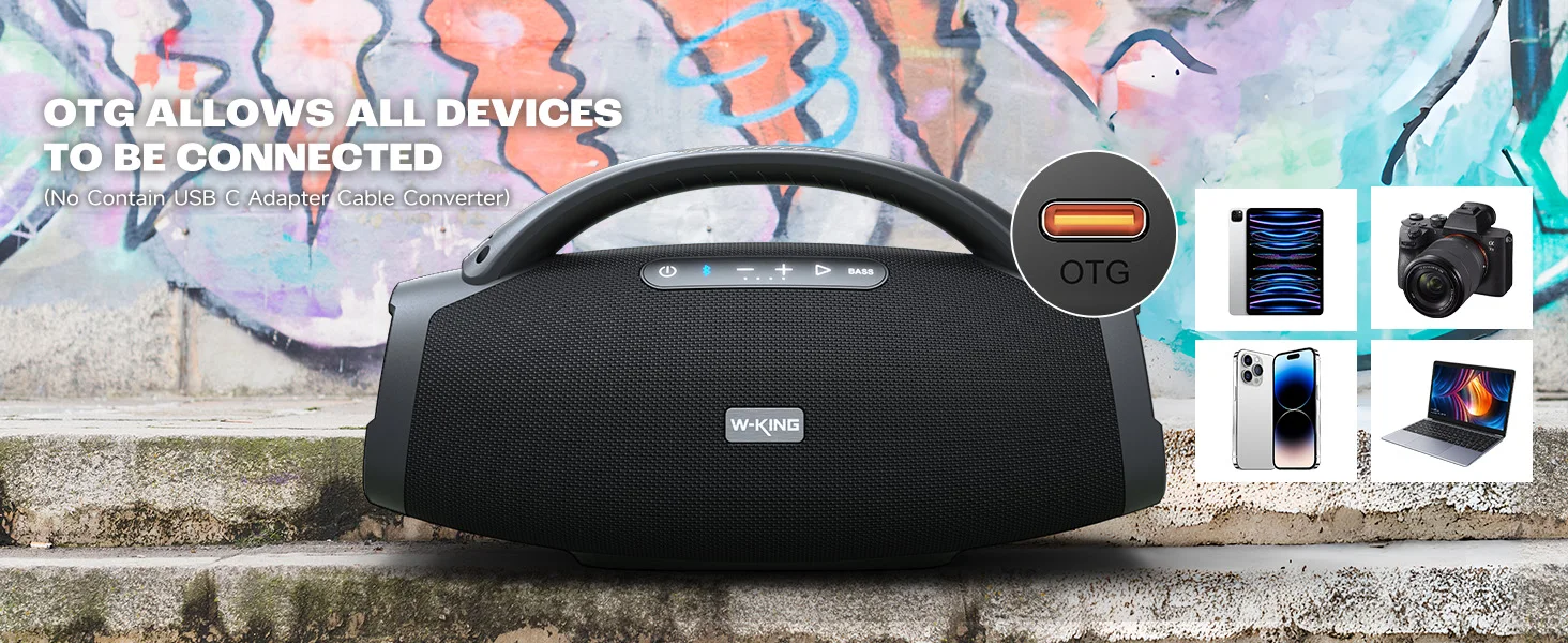 Support Advanced Bluetooth 5.3, OTG, AUX, TF, and U Flash: The X20 speakers bluetooth wireless feature better sound quality, faster data transfer speeds and lower consumption through Bluetooth 5.3. The speakers bluetooth wireless can bring you clearer and more detailed sound, a low-latency listening experience, less interference, longer connection range. OTG option allows to establish a direct connection between the speaker and compatible devices by OTG cable, such as smartphones or tablets