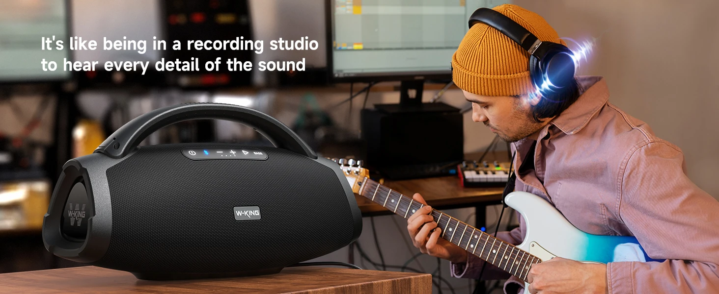Custom Sound APP: X20 large bluetooth speakers wireless support "W-KING" APP, so you can tailor the sound according to your preferences. you can boost or attenuate specific frequency ranges, allowing the large bluetooth speakers wireless to enhance the deepest bass end or emphasize treble for clearer vocals and instrumentals. Whether it's streaming music, watching movies, or playing games, you can customize EQ presets to enhance the audio experience for each type of content