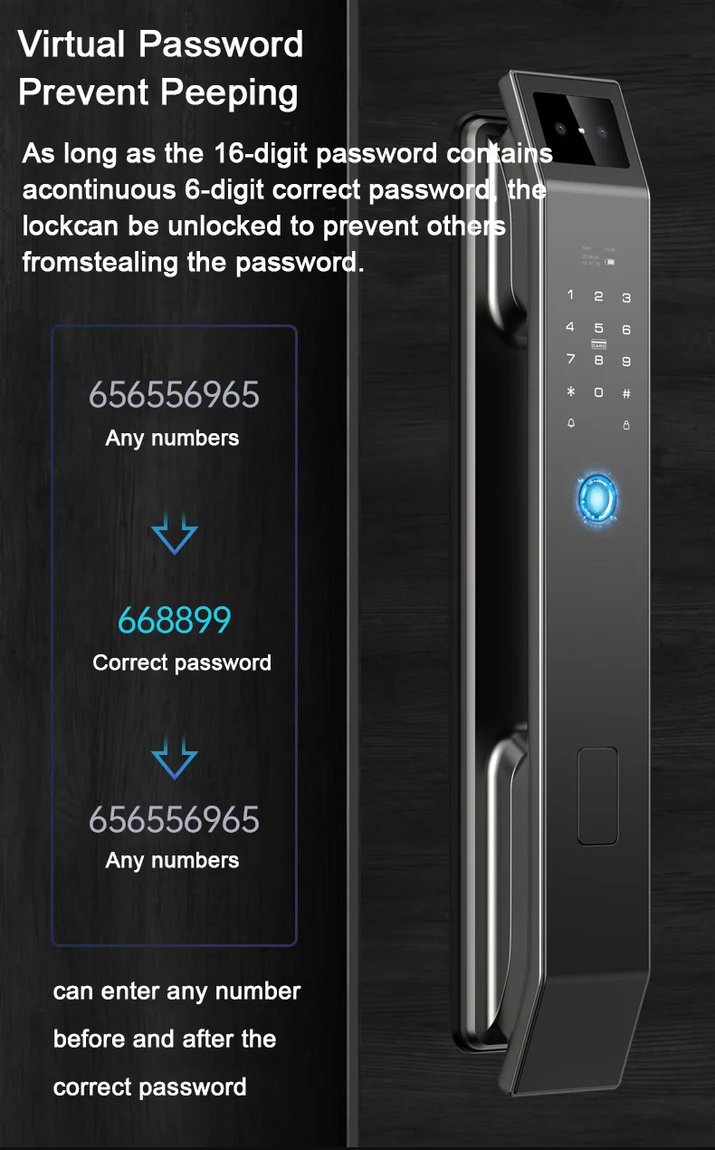 Ways To Unlock: Face Recognition,App,Mechanical Keys,Card,WIFI,other,Password,FINGERPRINT