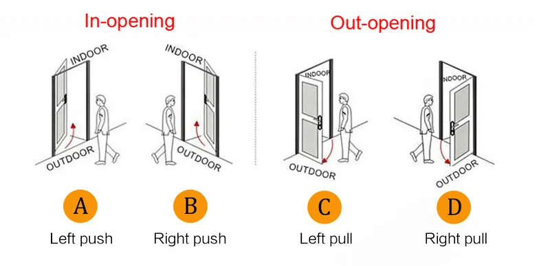 For direction of opening the door: The direction of the lock tongue can be easily adjusted, so the direction of the door is not important, and the direction of the lock tongue and the rotation direction of the motor can be adjusted as needed