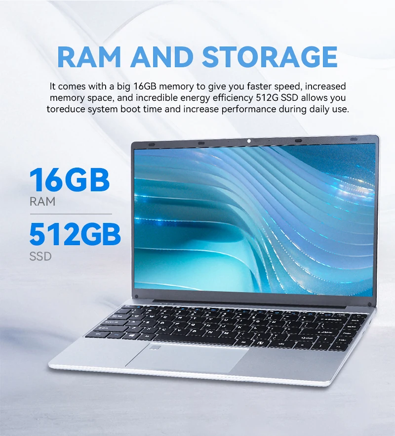 lt comes with a big 16GB memory to give you faster speed, increased memory space, and incredible energy efficiency 512G SSD allows you to reduce system boot time and increase performance during daily use.