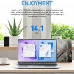 features a 14.1′ IPS LCD display, delivering stunning photos and video, while high definition panel ensures great contrast and color consistency, and there’s no color shift even when you’re viewing it from extreme positions.