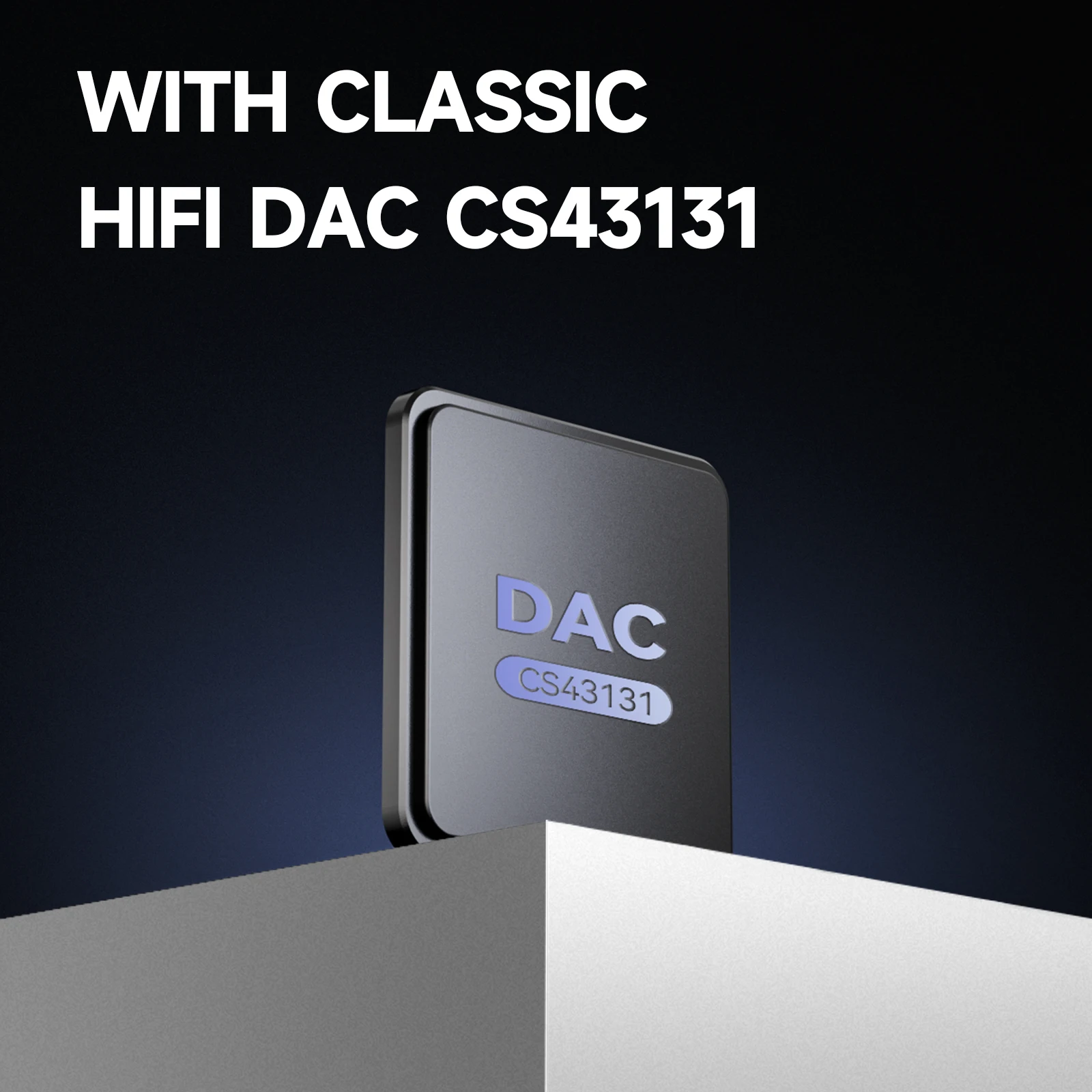 The CS43131, being a Cirrus Logic MasterHiFi DAC chip, decodes DSD256 natively, and has a hi-res headphone amplifier built in for class-leading audio fidelity at high battery power efficiency.