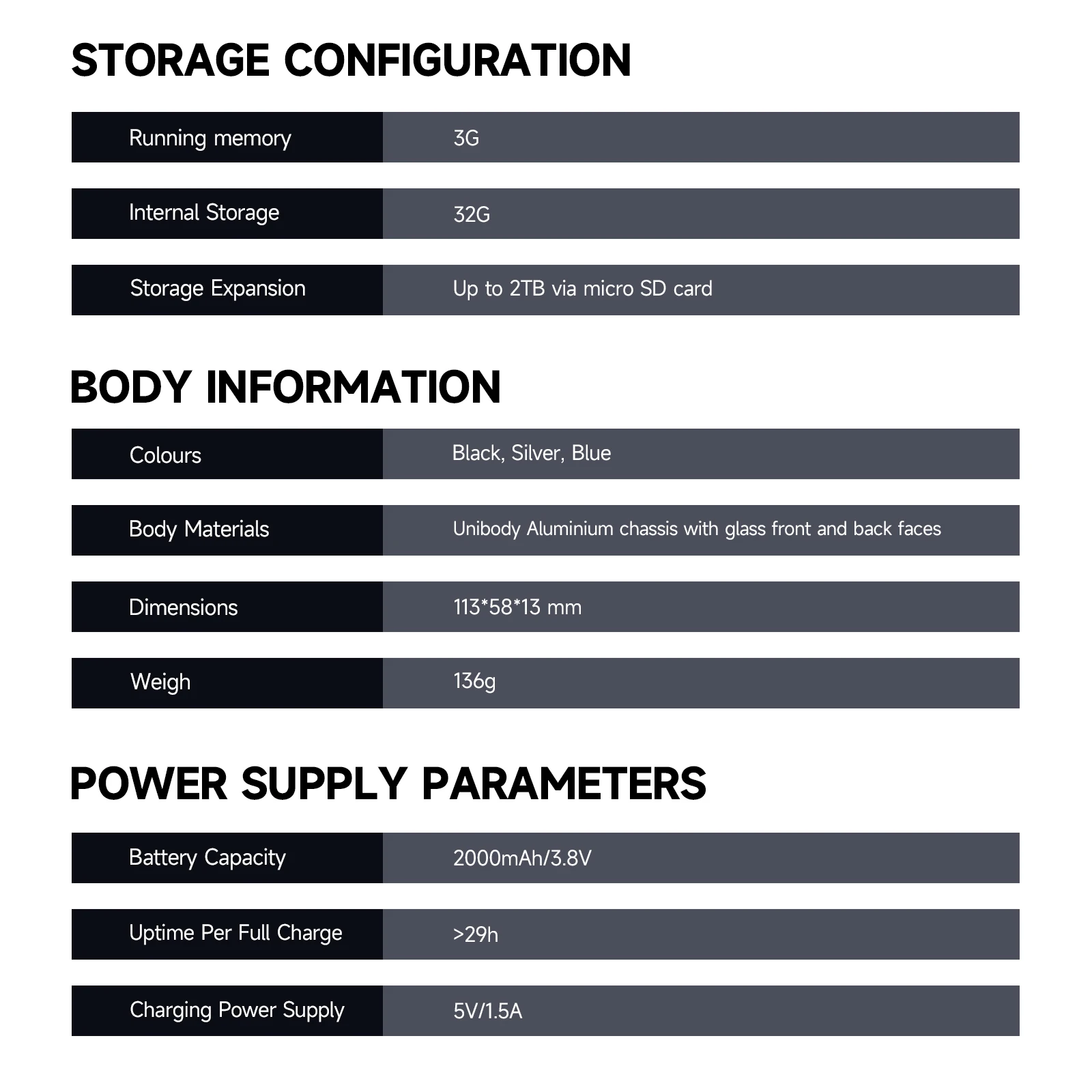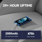 2000mAh large battery for 29+ hour uptime and over 15 days standby.