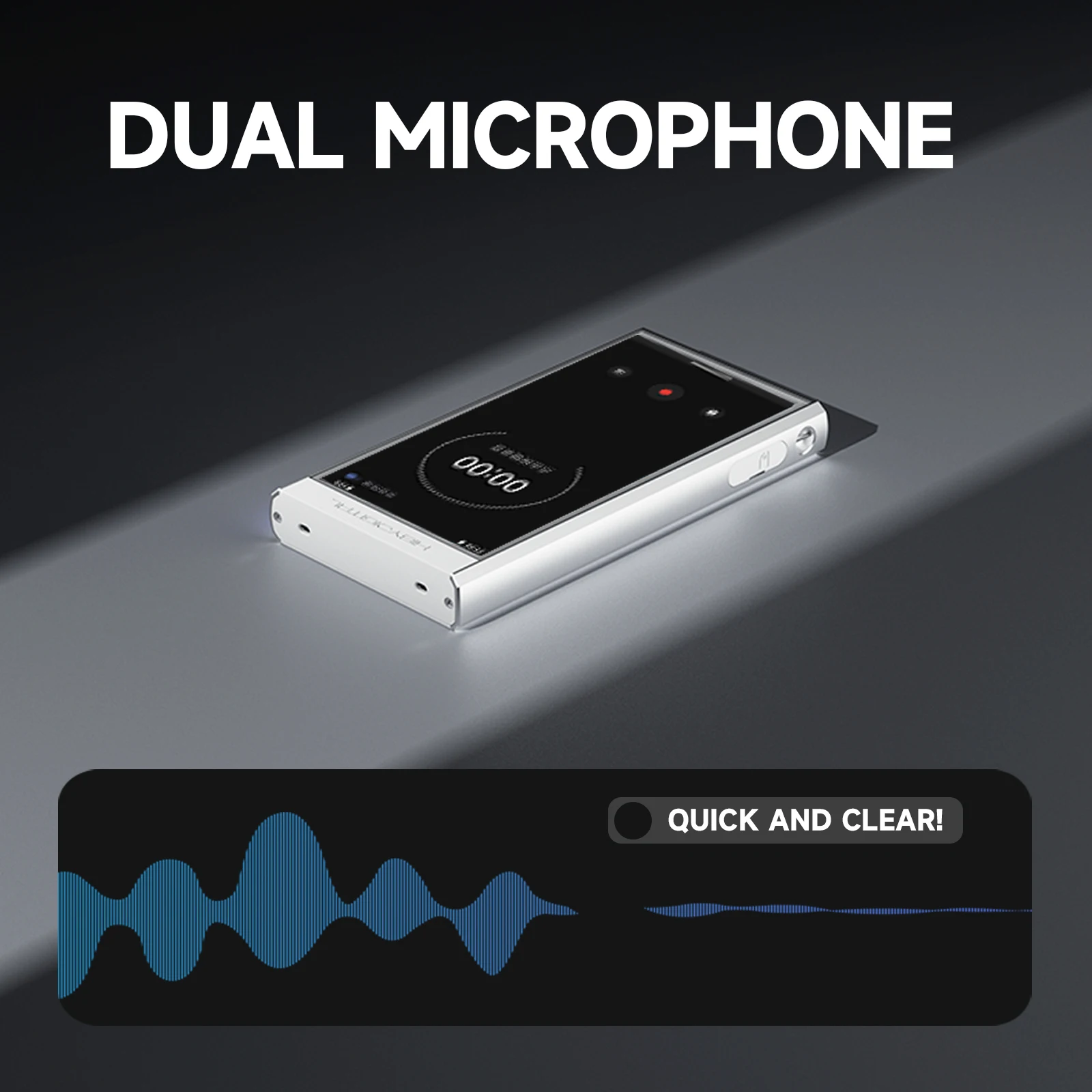 Dual embedded microphones, 360 degrees broadcast quality omnidirectional pickup, one-touch accessible via Fn button. For voice notes, interviews, you name it! Quick and clear!