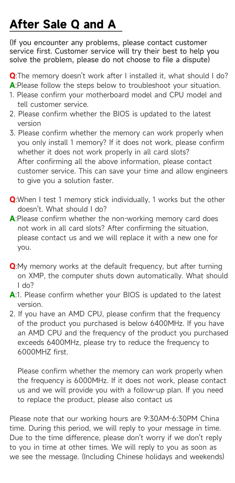 If you are an AMD CPU, please choose 6000MHz or 6400MHz (Hynix A die), otherwise the product may not function properly and the frequency may need to be reduced. To avoid causing you losses, please choose the correct option! Thank you for your understanding!