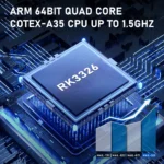 Professional gaming chip RK3326, 1.5ghz, 64 bits.