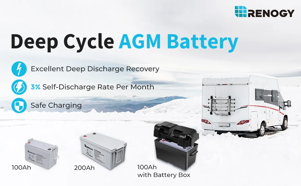 Long Shelf Life: Made of high purity materials, Renogy deep cycle agm batteries reduce the monthly Self discharge Rate below 3% at 77℉ (25℃), which is 5 times lower than their flooded counterparts.