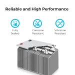 Excellent Discharge Performance: Proprietary quinary alloy plates and specially treated plate grids enable low internal resistance and high discharge currents of up to 10 times the battery rated capacity.