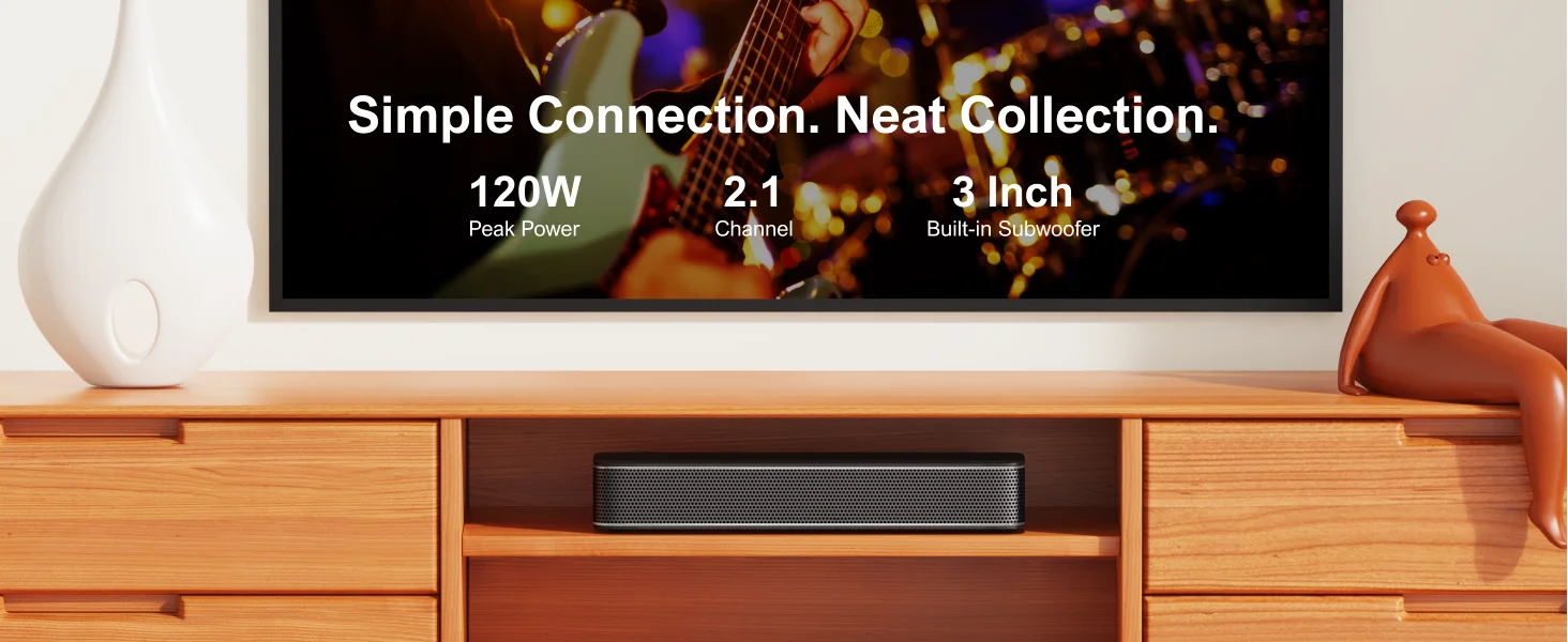 Built-in dual speakers and a subwoofer, Ultimea sound bar for smart tv offers clean treble, warm midrange, and powerful bass. The 2.1ch sounds offer you a superior audio experience and involve you in the joy of watching movies, listening to music, or playing games.