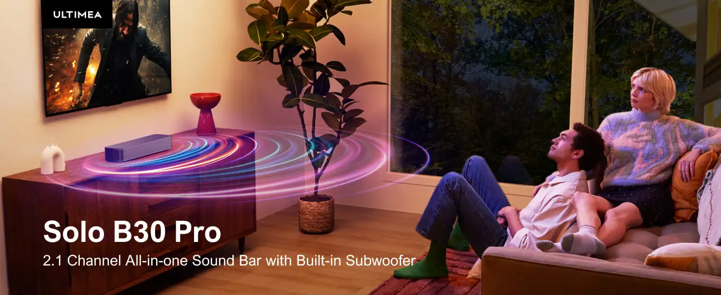 Ultimea is dedicated to making life more intelligent through the Ultimea Home. Ultimea smart App of this tv sound bar for smart tv can switch multiple EQ, adjust bands and matrix. Stay ahead with regular OTA upgrades to ensure a seamless premium audio experience with Ulitmea Solo B30 Pro soundbar.