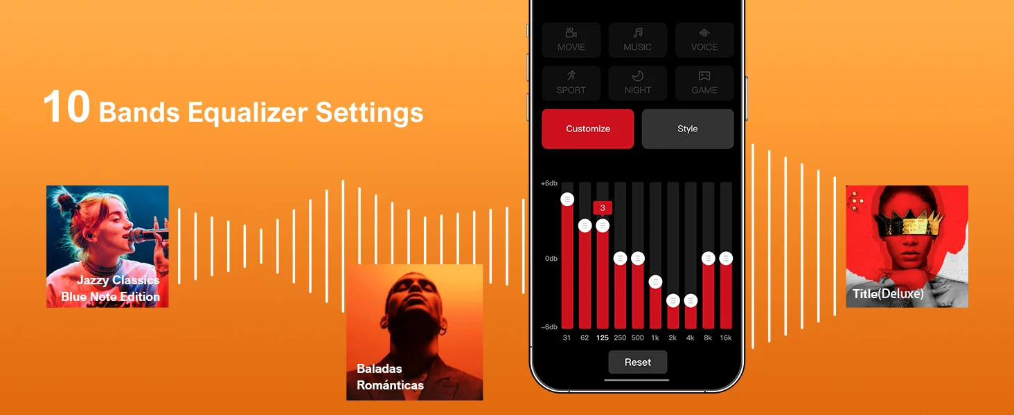 Elevate your audio experience with 6 tailored EQ modes: Movie, Music, Voice, Sport, Game, and Night, each finely tuned for optimal performance. Further refine your listening with the Ultimea App’s advanced “Customize”, allowing you to dial in the perfect personalized sound to match your preferences and environment.